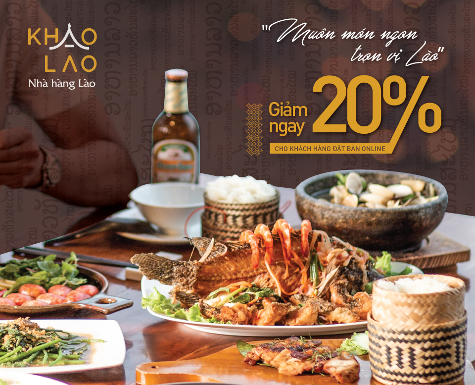 - Giảm giá 20% (chưa bao gồm VAT) cho khách hàng đặt bàn online/hotline